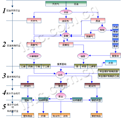 石油化工是以石油和天然氣為原料,生產(chǎn)石油產(chǎn)品和石油化工產(chǎn)品。石油產(chǎn)品主要包括各種燃料油(汽油、煤油、柴油等)和潤(rùn)滑油以及液化石油氣、石油焦碳、石蠟、瀝青等。生產(chǎn)這些產(chǎn)品的加工過(guò)程常被稱為石油煉制,簡(jiǎn)稱煉油。石油化工產(chǎn)品是以煉油過(guò)程提供的原料油進(jìn)一步化學(xué)加工獲得。首先對(duì)原料油和氣(如丙烷、汽油、柴油等)進(jìn)行裂解,生成以乙烯、丙烯、丁二烯、苯、甲苯、二甲苯為代表的基本化工原料。再以基本化工原料生產(chǎn)多種有機(jī)化工原料(約200種)及合成材料 (塑料、合成纖維、合成橡膠)。