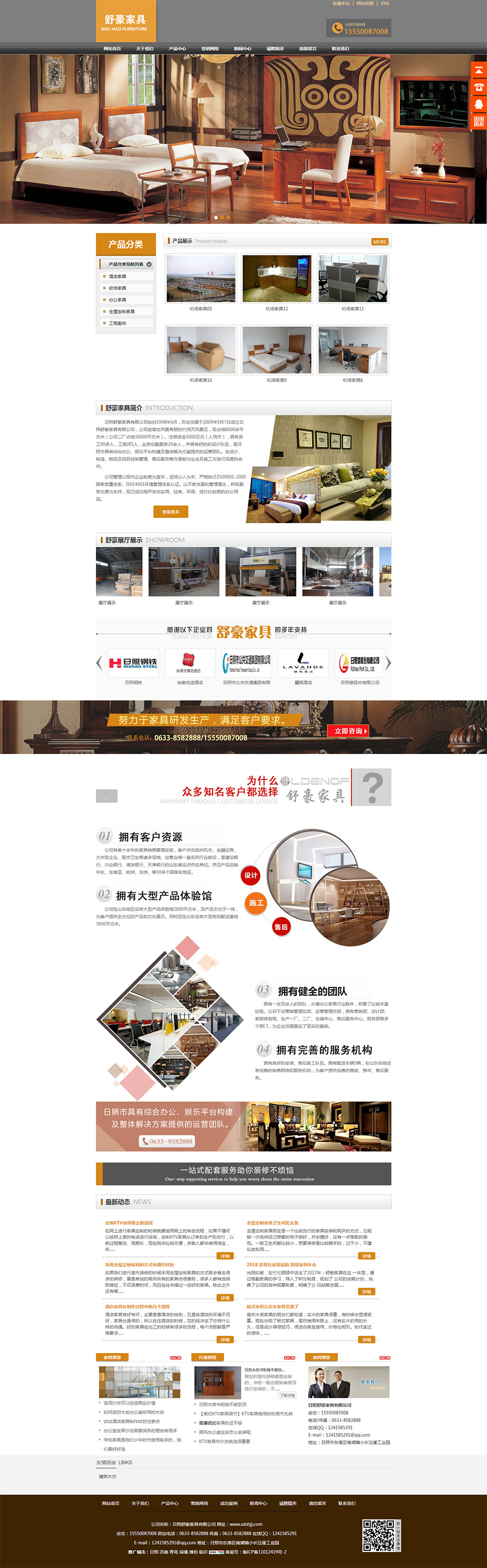 日照舒豪家具有限公司始創(chuàng)1998年6月,歷經(jīng)發(fā)展于2009年5月7日成立日照舒豪家具有限公司,公司座落在風景秀麗的竹洞天風景區(qū),現(xiàn)占地8000余平方米(公司二廠占地30000平方米)。注冊資金5000萬元(人民幣),員工90多人,工程師5人,業(yè)務(wù)后勤服務(wù)20余人,并好的設(shè)計隊伍,是日照市具有綜合辦公、娛樂平臺構(gòu)建及整體解決方案提供的運營團隊。在設(shè)計、制造、物流及項目控制管理、售后服務(wù)等方面能與業(yè)主及施工方進行深度的合作。